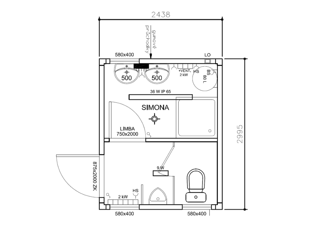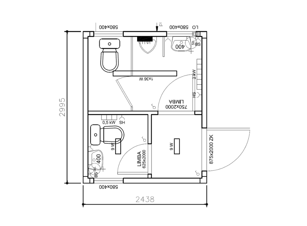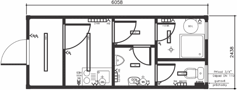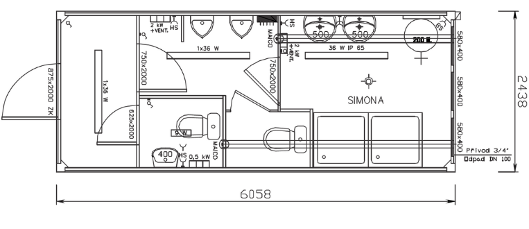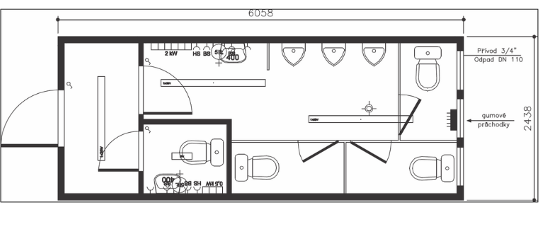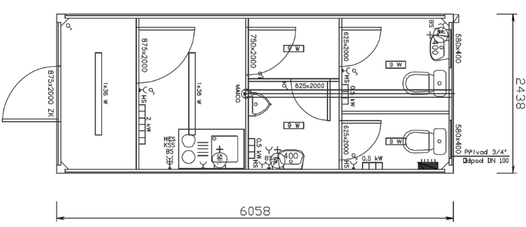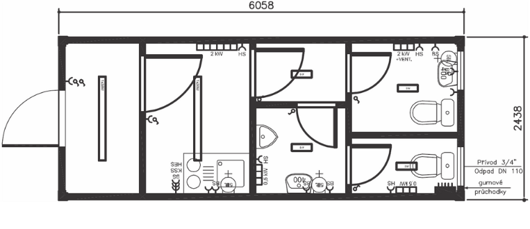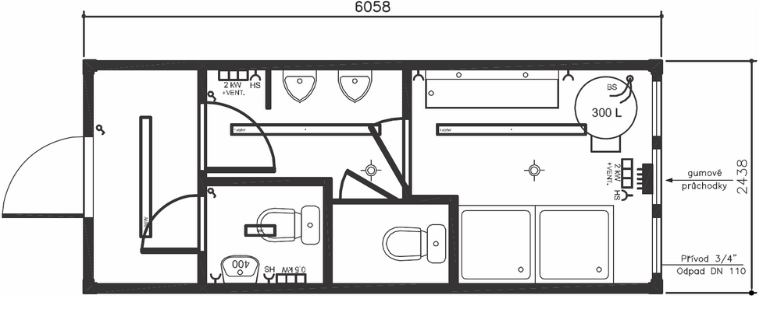 Modul sanitar INS2 -dușuri, toalete, boiler