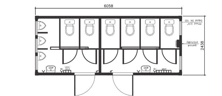 Modul sanitar mixt femei/bărbați - toalete, minibucătărie