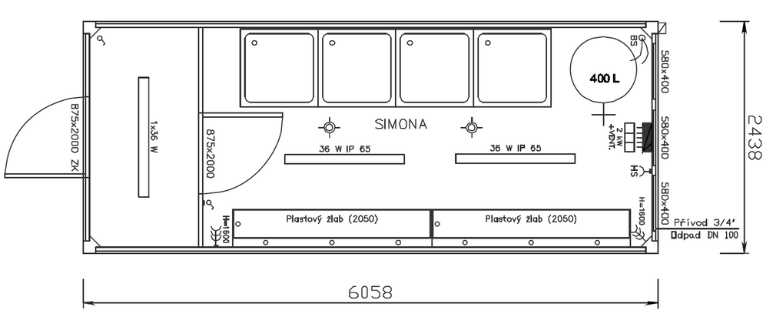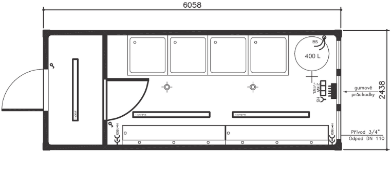 Modul sanitar INS1 - dușuri, lavoare, boiler