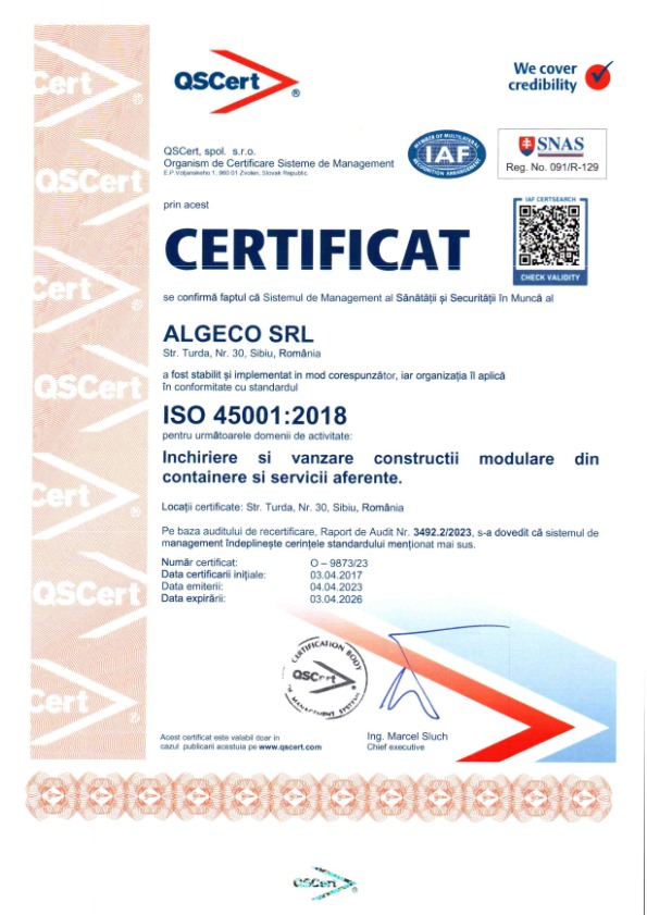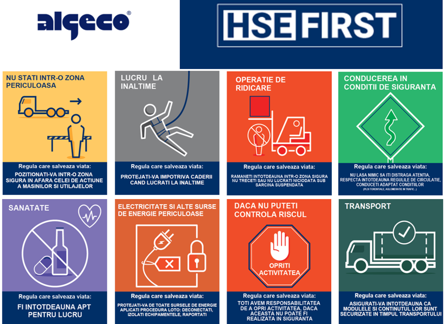 La Algeco România, siguranța și sănătatea sunt esențiale în toate activitățile noastre. Ne angajăm să oferim un mediu de lucru sigur, fără riscuri, în care fiecare angajat se simte protejat și respectat. Politica noastră HSE (Health, Safety & Environment) este integrată în toate procesele de business, asigurând o abordare responsabilă și durabilă în fiecare etapă a activității.