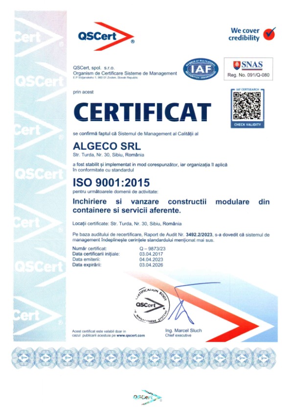 Compania ALGECO işi desfăşoară activitatea într-un mod responsabil pentru mediul înconjurător, asigurand un mediu de lucru sigur și sănătos. Preocuparea continuă pentru combinarea succesului economic cu metode sigure și ecologice reprezintă prioritatea noastra. În acest context, ne-am bazat exclusiv pe companiile partenere selectate care servesc în beneficiul mediului, sănătății și al siguranței.